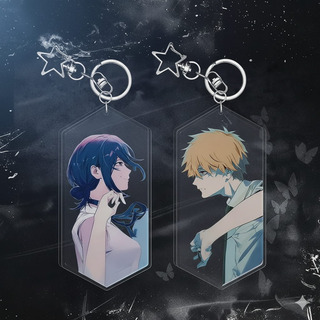 Witness the iconic connection. The Duality Keychain Set unites the contrasting emotions of Denji and Reze in a single, elite accessory. More than just a keychain, this set is a symbol of their explosive, complex relationship, rendered in breathtaking, premium detail. It's the ultimate way to display your Chainsaw Man fandom with sophistication and style.